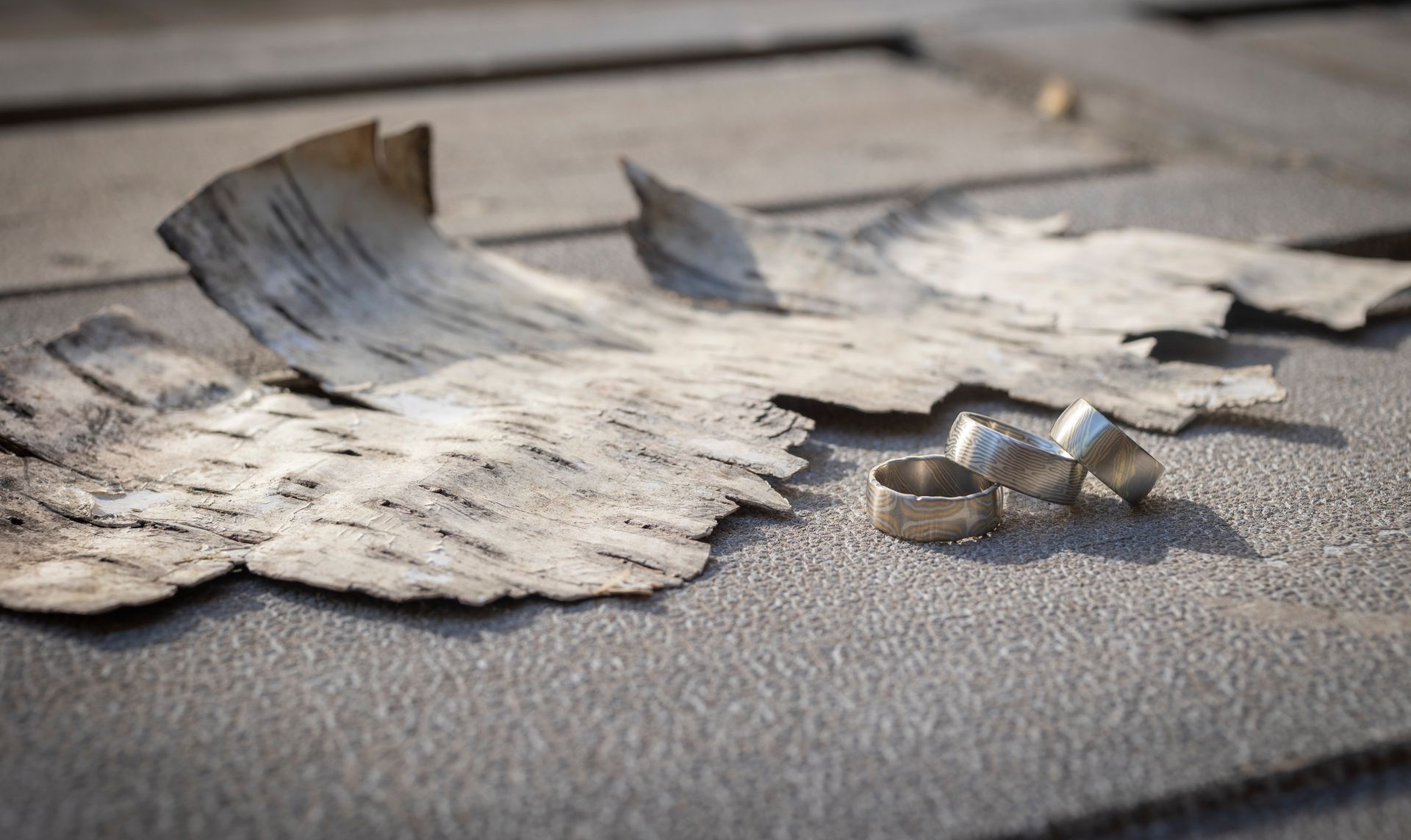 Die traditionelle japanische Schmiedetechnik Mokume Gane verbindet edle und unedle Metalle zu einer harmonischen Einheit. Durch das Schmieden entstehen einzigartige Maserungen – keine zwei Stücke gleichen einander.