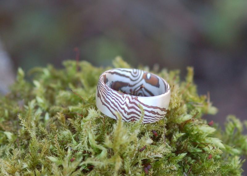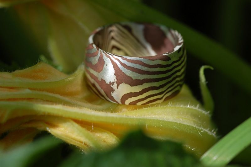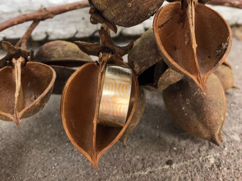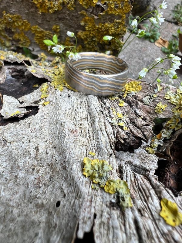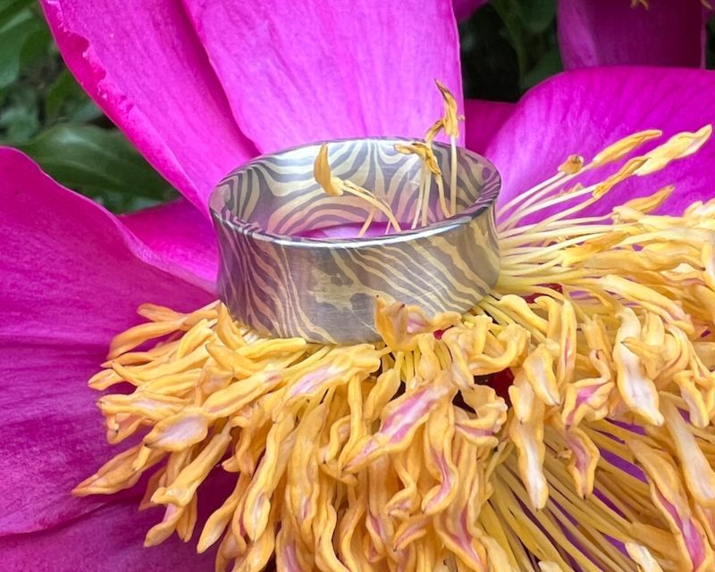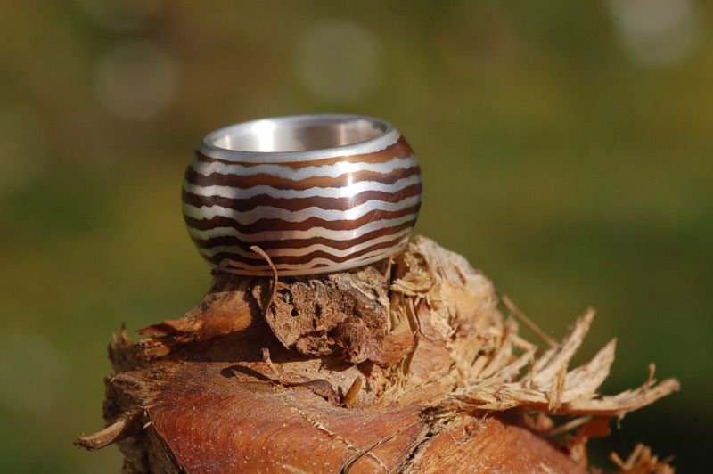 Ein Mokume Gane-Ring ist mehr als ein Schmuckstück – er trägt ein lebendiges Muster, das nur durch traditionelles Schmiedehandwerk entsteht.